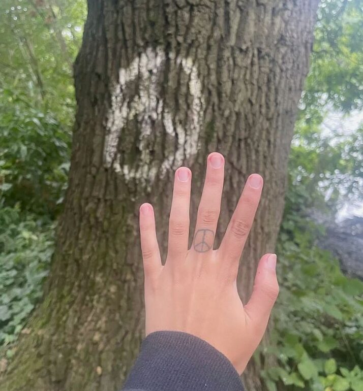 And if you’re wondering what the wonky peace sign logo is all about, it’s inspired by my own wonky stick and poke I did on myself as a teenager. I’ve always had a message to share, even if it is tattooed on my middle finger.